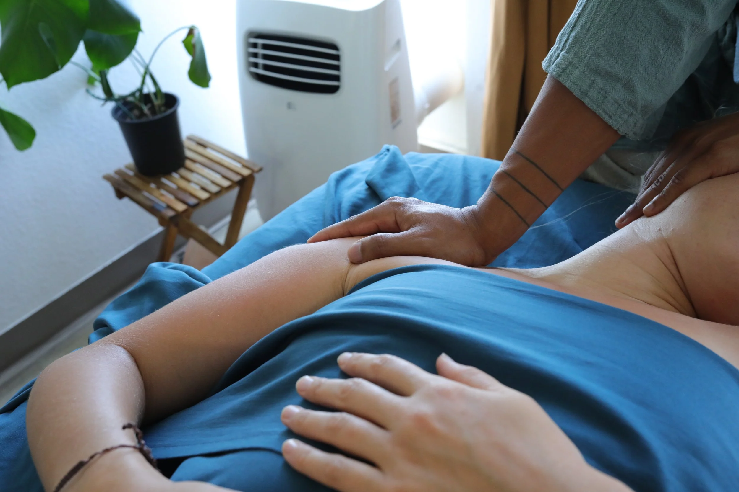 My work is grounded in a blend of nervous system awareness, intuitive touch, and years of experience holding space for people to soften, release, and reconnect. I weave in conversation, presence, and subtle guidance: creating a space where your body feels safe enough to let go of what it’s been holding.